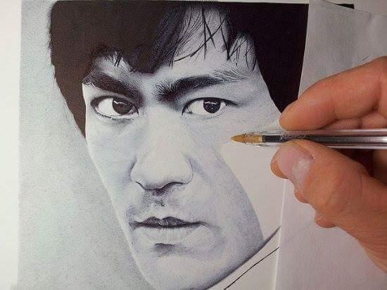 李小龙的铁杆粉丝用圆珠笔还原偶像的一瞬。