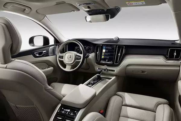 在车辆内部,新一代沃尔沃XC60采用家族化设计,中控台以纵置式的液晶显示器作为主体,两侧辅以同样纵置的空调出风口,并且通过银色的饰条点缀。中控面板保留部分必要功能物理按键。副仪表板的高度以及宽度全面提升,营造的包裹感相当不错,符合这一级别车型的定位。