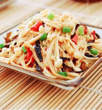 3、汆烫好的金针菇要轻轻的挤干水份,以免上桌后菜品溢出太多水分,影响味道和美感;斤!