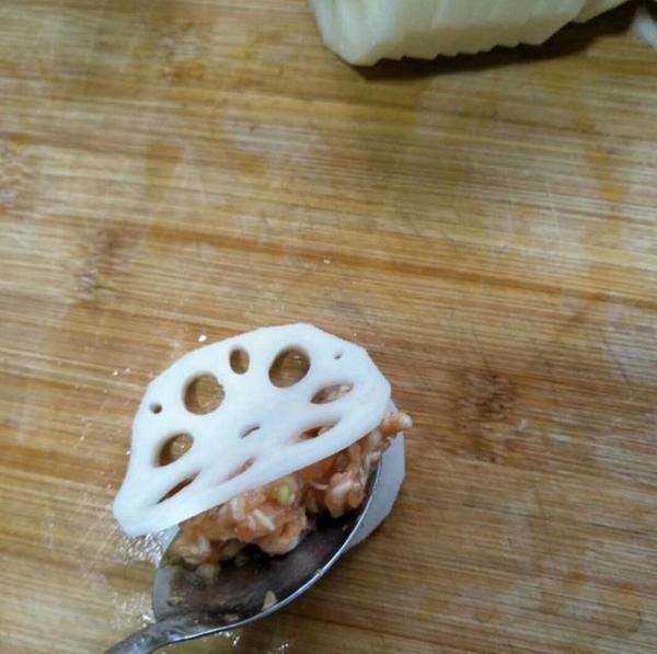 做法:1、把莲藕洗干净削去外皮,猪肉剁成末,加入盐、生抽、淡粉、葱蒜末一起搅拌均匀,顺着一个方向搅,搅成泥状;