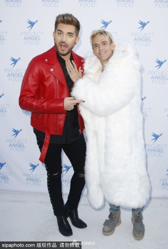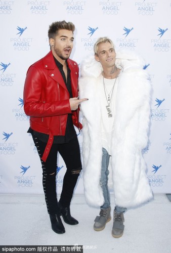组图:亚当·兰伯特穿红皮衣 遭亚伦·卡特袭胸面容"惊慌"_北京时间