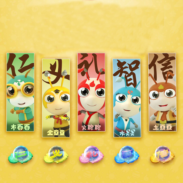 五只小蚂蚁各具特色,人品超赞的金童童,热情似火的火聪聪,纯朴无华的土豆豆,善良敏感的水灵灵,加上逗比的木吞吞,这一队小伙伴的性格就像真实的孩子,充满好奇心和正义感,虽然思维还不成熟,也会有一些贪玩、懒惰的小毛病,但是童趣十足的形象很是讨喜。