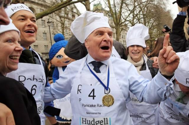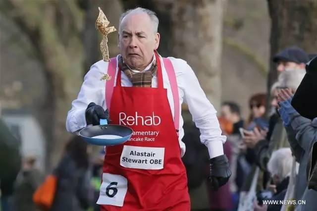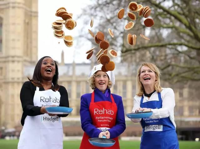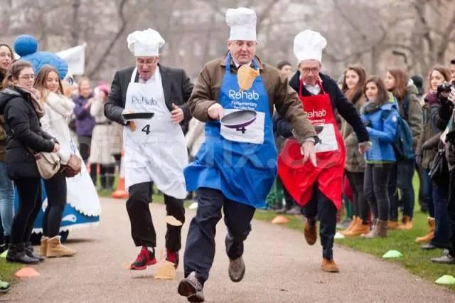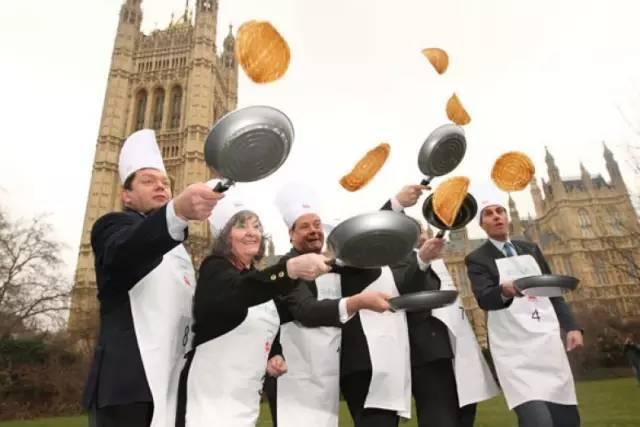 每到2月或3月的煎饼日这一天,英国各地都会举行煎饼赛跑比赛,连一向严肃(?)的议会都会加入。