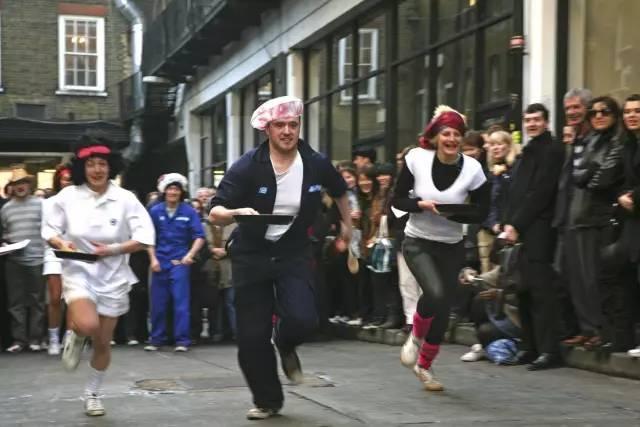 按你胃,这个传统就从此流传了下来,大家也开始在这一天玩起了煎饼赛跑。