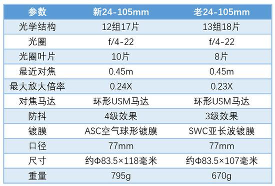 新老24-105mm参数对比