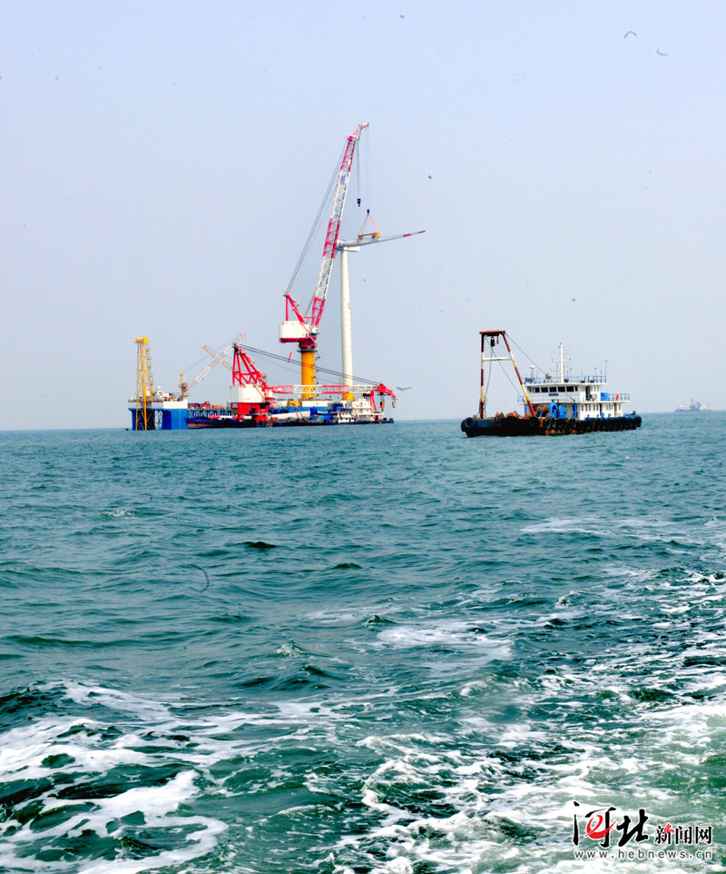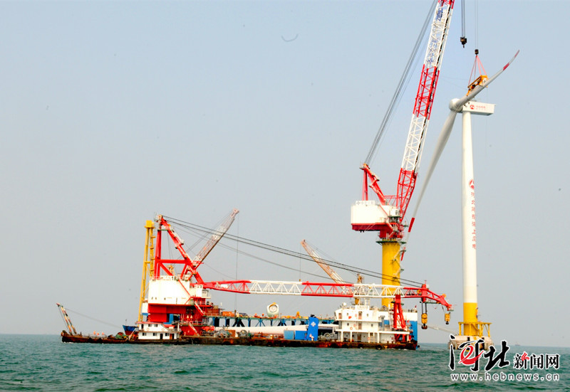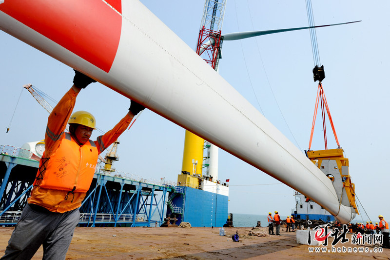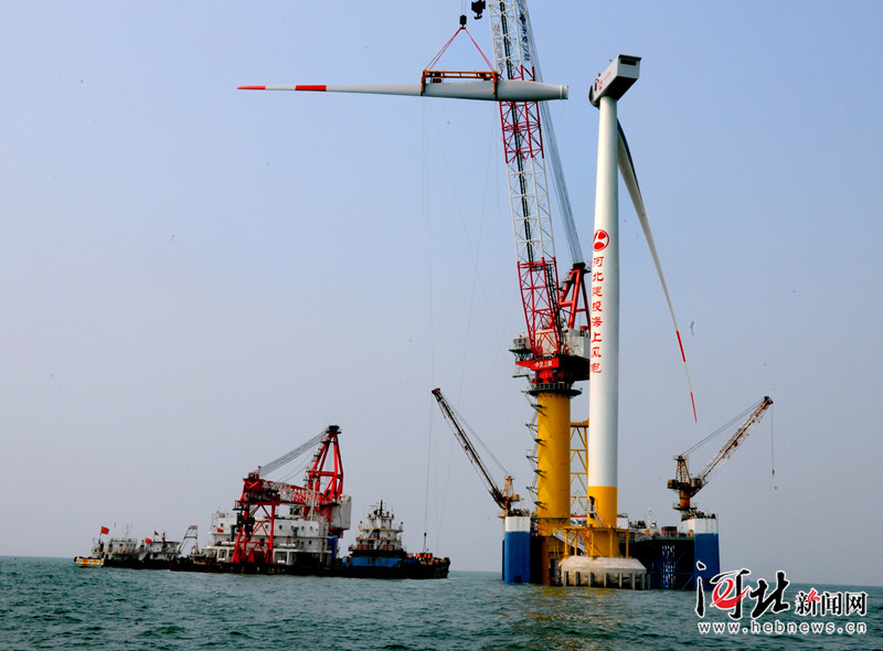 9月13日,河北省首个海上风电项目--乐亭菩提岛海上风电场工程全面进入风机组装阶段,第一组风机叶片吊装工作顺利完成。