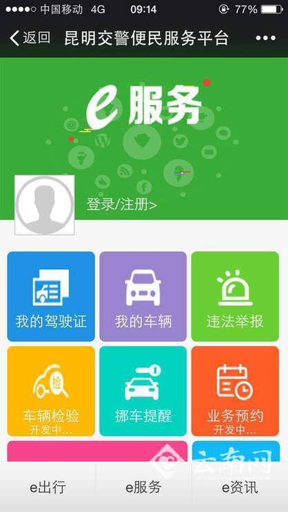 在昆明地区出门忘带证件?再也不用怕。在昆明交警的微信服务号上,市民将拥有专属的"电子证件"。在"e服务"版块里,我的驾驶证、我的车辆、违法举报、挪车提醒、交通违法和通行证都能免去驾驶员没带相关证件的担忧。哪怕你车辆被挡,没关系,一键挪车帮你忙,通过官方平台会通知对方车主,再也不用担心被堵路啦。