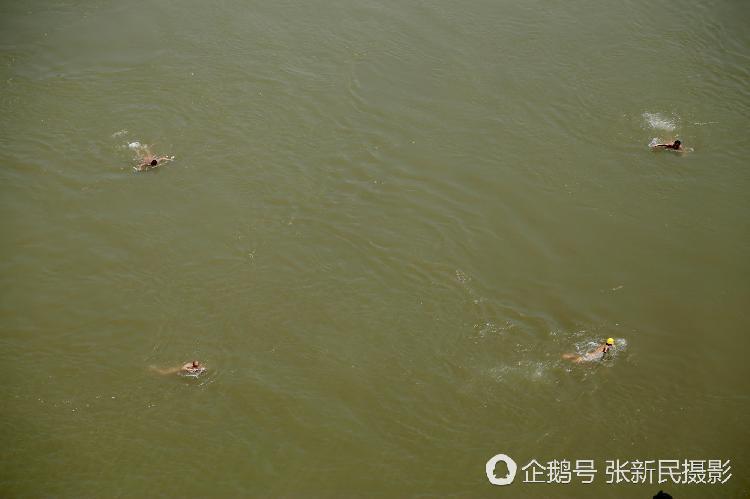 九龙坡在建设码头两个高架桥墩下。最早在江滩裸泳的是原建设厂退休职工,距今已经有四十多年的历史,如今队伍已经发展到两三百人。