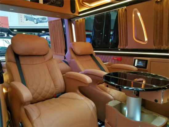 奔驰斯宾特作为奔驰的豪华房车,不仅内部配置豪华舒适,而且内部空间非常宽敞,重要人物在车厢内踱步思考更是不成问题。奔驰商务斯宾特的车身下部配有一个大尺寸的电动踏板,它会随着车门的开关而自动的升缩。奔驰斯宾特吧台旁边座椅前方设有一个可折叠的小桌面,充份考虑到乘客使用笔记本电脑、写材料、用餐等需要,非常人性化咨询热线:1891 154 1890秦经理【同微信】