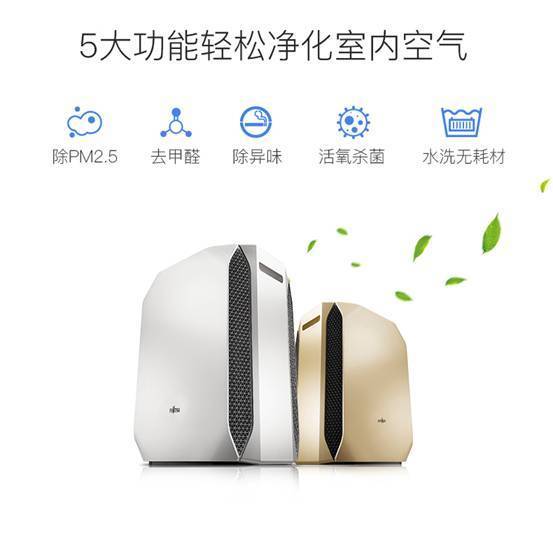 富士通将军36ENA无耗材空气净化器家用除pm2.5杀菌氧吧甲醛雾霾的特点: 1、 终身水洗不换网。 2、 除菌率99.9%,33分贝低噪音,高效级颗粒物惊呼功能。 3、 适合26-45家居面积。 4、 5大功能轻松净化室内空气,去除PM2.5,去甲醛,除异味,活氧杀菌,水洗无耗材。 5、 强力静电的力量,连PM0.1也能拦截。