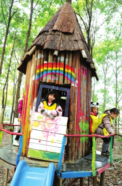 一粒稻谷如何从秧苗变成了香糯的米饭?在高高的树上怎样搭建属于自己的个性小屋?不同的花草有着怎样的香味,又有着怎样不同的花期?甚至玩泥巴也会玩出不同的境界,比如找一找不同泥层中有怎样不同的物质成分?开设在苏州相城区一处休闲生态园区域内的这个森林学校崇尚自然教育。