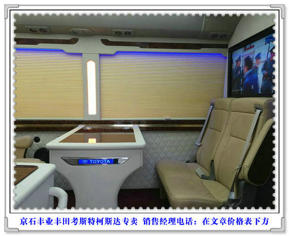 2017款丰田考斯特VIP现车到店,顶级商务巴士,店内专业设计个性改装并且优惠无限,全能小巴士提供专业奢华改装,超强配置性能更强,最新款考斯特商务客车专家,极限改装方案你定手到拈来,更多精彩尽在北京京石丰业汽车销售有限公司。