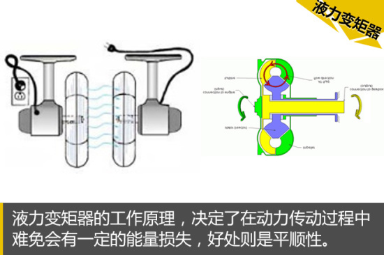 自动挡变速器是通过液力变矩器将扭矩从发动机传递到变速器中,原理就像是两个对在一起的风扇,打开一个风扇,另外一个风扇也会被吹着旋转一样。只是传递介质由空气换成了变矩器油,并且叶片和油路经过工程师严密的设计,传递效率高出很多,但相比摩擦式离合器的硬性连接,还是会有少量的能量损失。