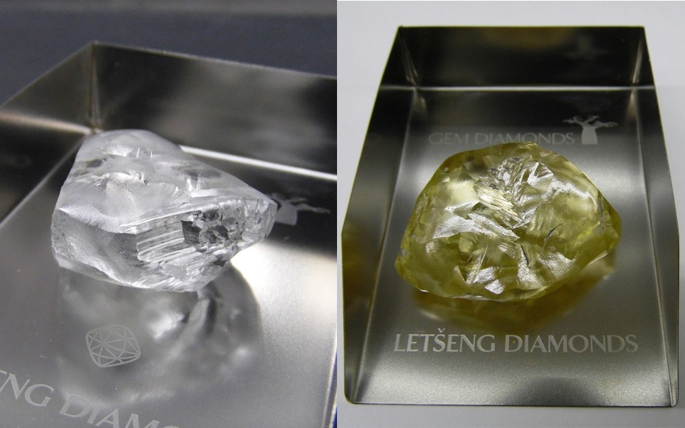 金投珠宝网(http://zhubao.cngold.org/)06月20日讯,英国钻石开采商Gem Diamonds上周宣布,在非洲南部「莱索托王国」(Lesotho)的Letšeng钻石矿发现2颗超过100ct的宝石级钻石原石--一颗151.52ct黄色钻石原石,为Type I 型钻石;另一颗原石是Type IIa型D色钻石,重量达到104.73ct。