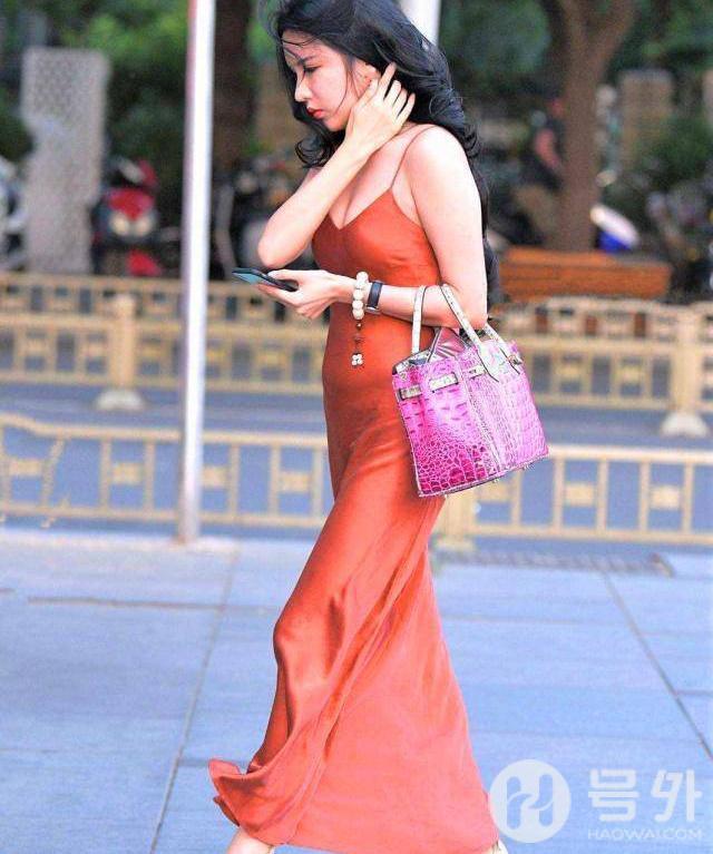 小姐姐出街的时尚搭配着一条橘色的绸面吊带连衣裙,细细的肩带能够让她的双肩看上去更加的有韵味,修身的版型与绸缎的面料结合在一起,看不出褶皱的感觉,带着一种温柔的性感。脚上搭配一双裸色的尖头高跟鞋,走路的时候带动飘逸的裙摆,让小姐姐在举手投足之间也能够带着魅力。