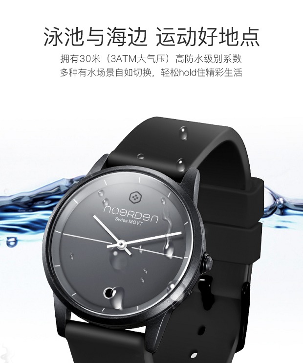 LIFE1智能手表更是拥有30米高防水级别,无论是海边还是泳池,NOERDEN 智能手表LIFE1都可无时无刻地陪伴你。