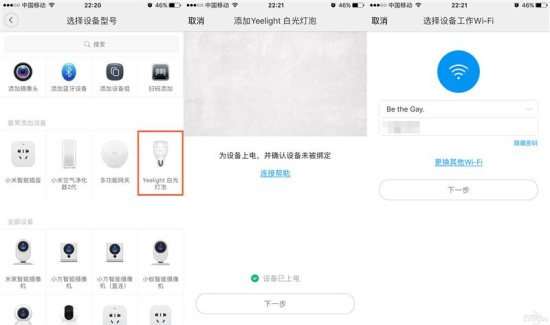 Yeelight智能灯泡只能选择高饱和度的纯色,并通过调节亮度获得较暗的颜色,如果想实现浅蓝色,那只能选择蓝色然后降低亮度,得到的只是很暗很暗的蓝色。