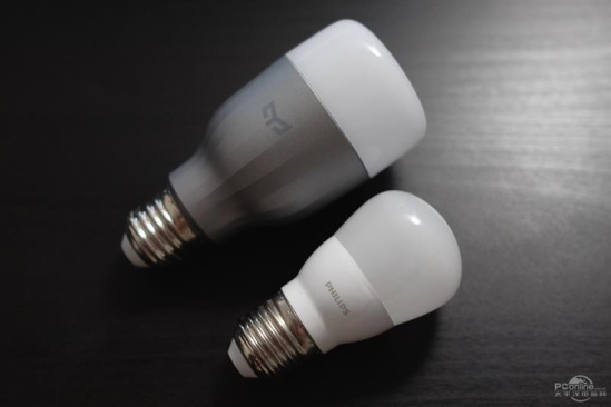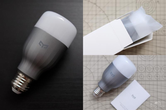 拿到快递,拆开包装,不得不说Yeelight智能灯泡彩光版确实比5W的飞利浦暖色灯泡大很多,估计里面的电路版等元件占了几乎全部空间。