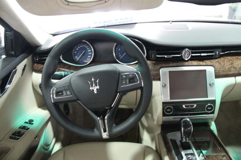 内饰方面:玛莎拉蒂总裁的内饰的内饰尤其是中控台变得简单清晰了许多,应用了更多的桃木装饰,将精致度又提升了一个档次,中控台繁琐的按键也被取消,一个大尺寸液晶显示屏占据了大部分空间。