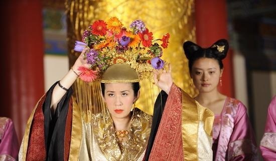 香肠嘴不在时,吴君如穿上这身衣服还是挺美的,只是这套造型的发饰又成功抢镜了,满头各种颜色的花,证明这西宫娘娘品味不一般。