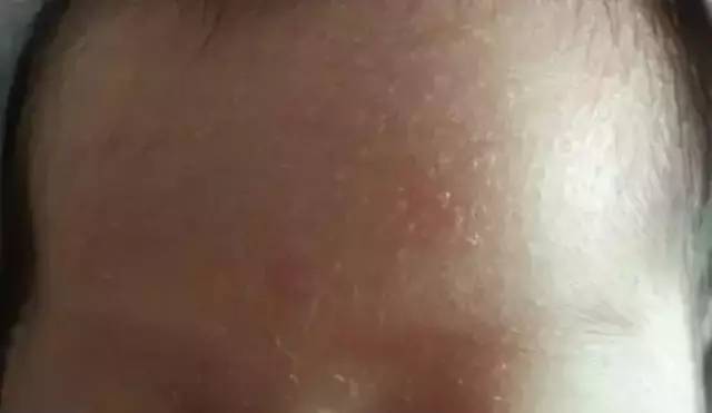 白痱:如上图,常见于新生儿,脑门上长些细小透明的小水泡,颜色发白,一般不痛也不痒。多数原因可能是给宝宝穿戴过多,或者在烈日下暴晒导致。一般在环境凉爽,或者给宝宝洗个温水澡之后,1~2天可自行消退。