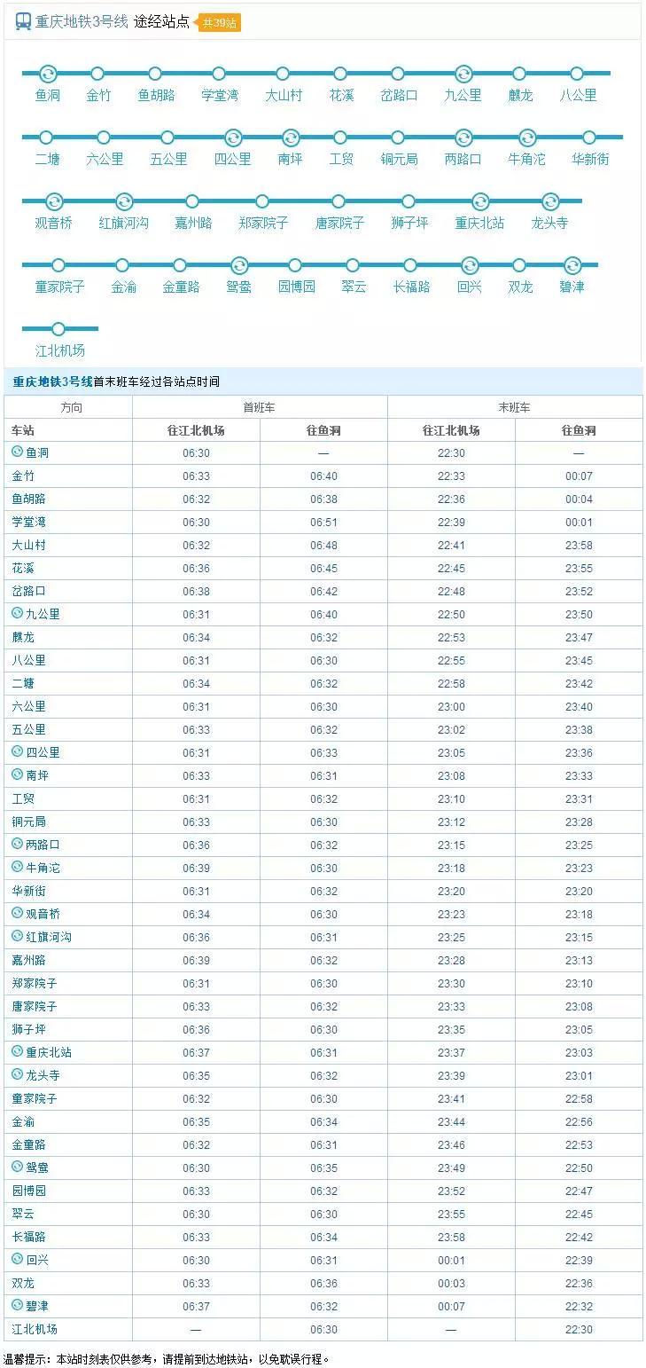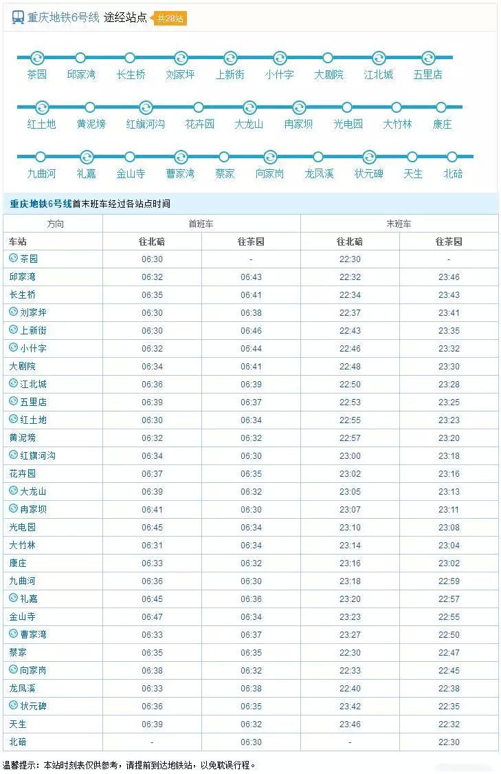 2017重庆最New轨道交通运营时刻表出炉!_北京时间