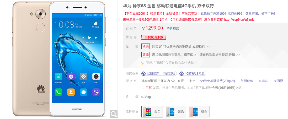 另外,主打千元市场的华为畅享系列也有多款机型限量开抢,华为畅享6S下单立减200元,还有满1000减100券可叠加使用,最高优惠300元。