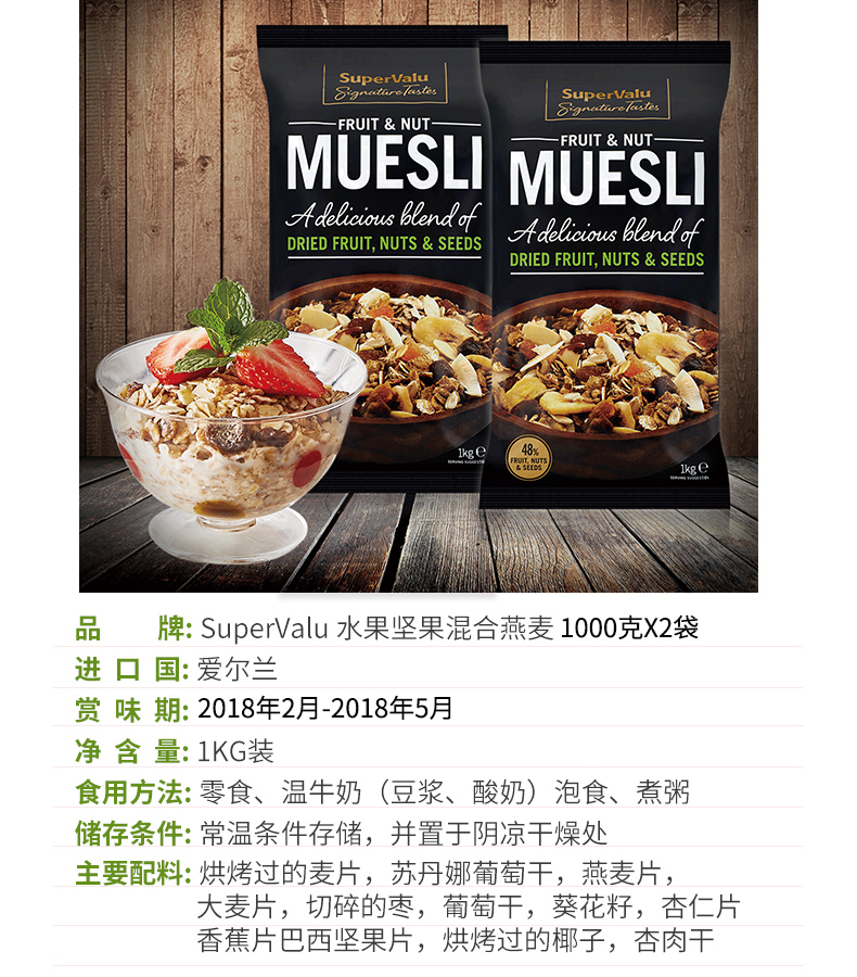 爱尔兰进口,SuperValu水果坚果混合燕麦1kg×2袋49元新低_北京时间
