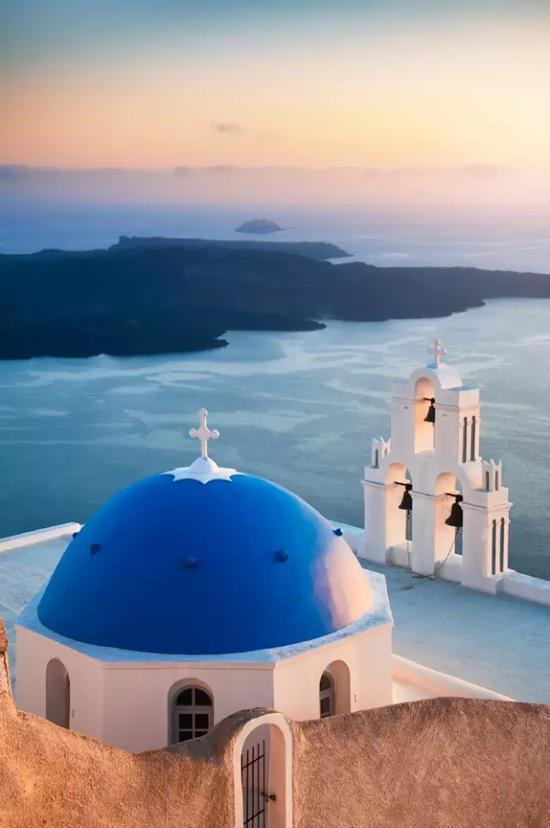 比如下面这张圣托里尼的教堂和远处的小岛,就使用了纵透视。通过较高机位带来的景物纵向分布,来增加空间感。