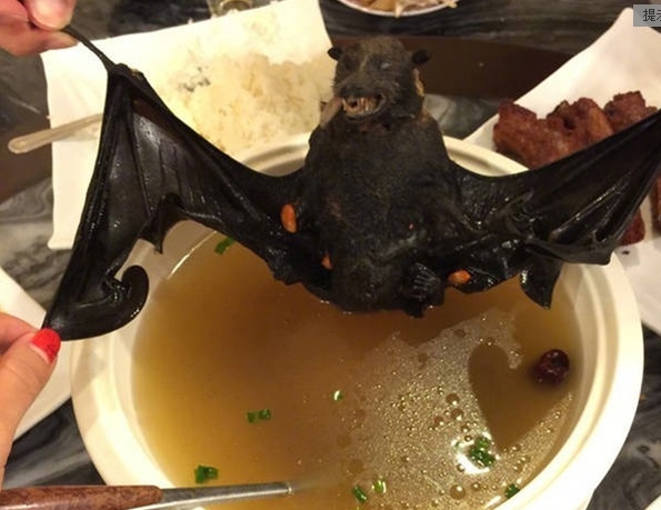 最常见的蝙蝠汤烹调法,是选好蝙蝠直接放在沸水中与椰汁、姜、香料在一起,煮上好几个小时,有时候也加入枸杞。据说,加入椰汁是为了去掉蝙蝠的臊味。估计店主担心影响大家食欲,端上桌时肉与汤已经分离,我们游客是看不到蝙蝠的,起初喝起来时感受味道很鲜美,有点像鸡汤,也有人说像骨肉茶。