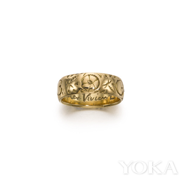 还有几件费雯·丽的私人珠宝,其中最为珍贵的有两件,其一是她的第二任丈夫劳伦斯·奥利弗赠与她的一枚黄金雕花戒指,戒圈内侧印有"Laurence Olivier Vivien Eternally"的字样。虽然他们的婚姻最终以悲剧收场,但是费雯·丽致死都对夫劳伦斯·奥利弗念念不忘。