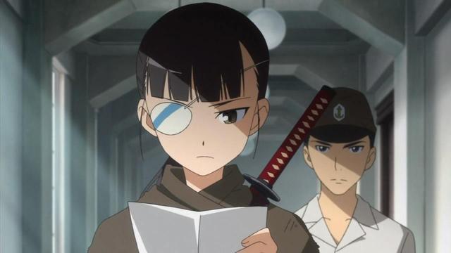 一头蓬松的黑色鲍伯式短发,精致秀气的面孔,诡异的眼罩,鲜红的右眸,苍白的皮肤,小巧玲珑的身材,拥有三无少女的气质,鸣的任何地方都在吸引着人的眼球,让人不由地被她吸引着。