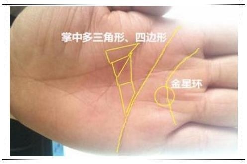 3;三角纹位于掌心明堂,内嵌着大小两个三角纹,两个三角纹紧紧相贴又内嵌其中,拥有这样手相的人,财运丰隆,尤其偏财运旺盛。能够在别人涉及不到的领域发财,往往胆大心细,擅于投资,年入百万不是梦