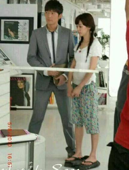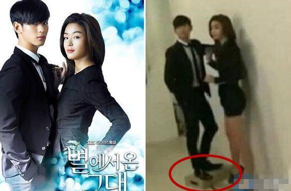 这对CP也让很多单身汪狗粮吃得饱饱的,啤酒配炸鸡也大火了一把,金秀贤在男明星中不算矮,但是170+的全智贤竟然还要穿高跟鞋!!只能辛苦都敏俊踩木箱啦,左图是拍出来的海报,感觉还不错~