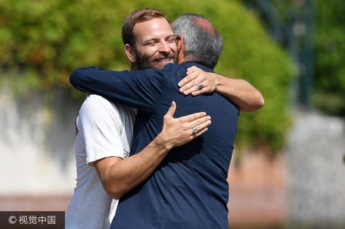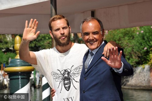 新浪娱乐讯 当地时间2017年8月29日,意大利威尼斯,第74届威尼斯电影节即将开幕。男演员亚历山德罗·博尔吉( Alessandro Borghi)抵达酒店,获威尼斯电影节主席Alberto Barbera和威尼斯双年展主席保罗·巴拉特(Paolo Baratta)亲自迎接。
