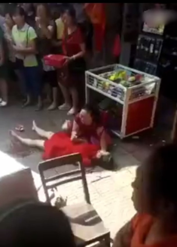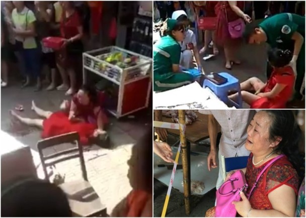 案发时,一家人正在逛街,突然听到有女子的尖叫声,转过去一看,发现一个中年男子正拿着刀,连续向年轻女子的后腰部位刺了3下。
