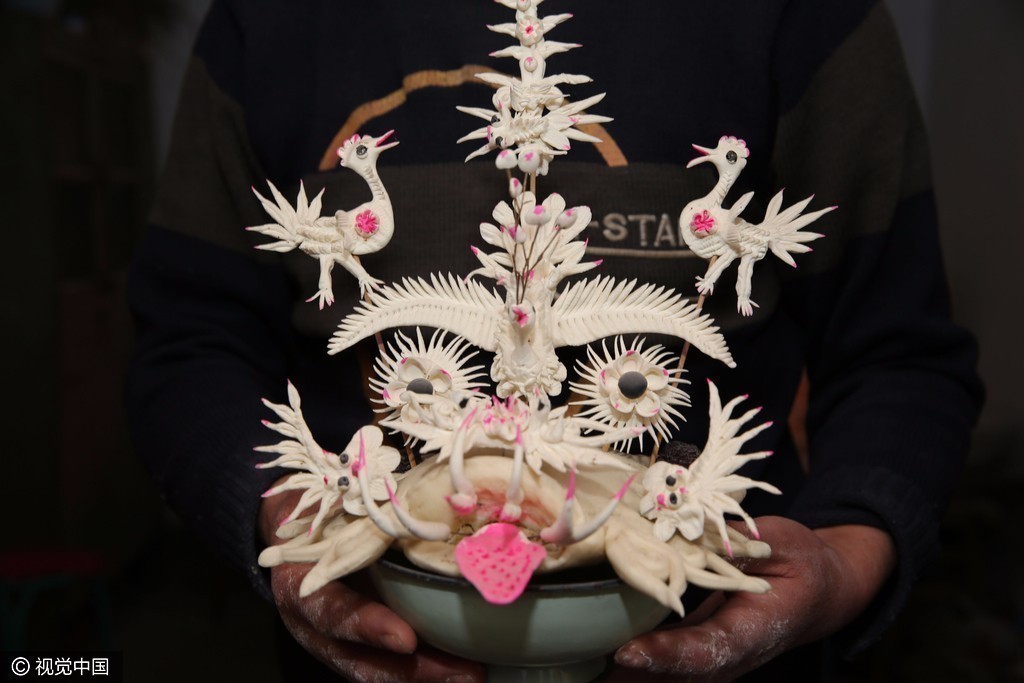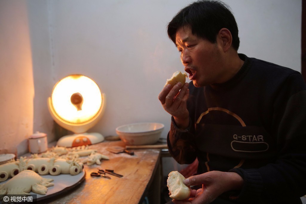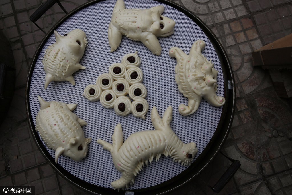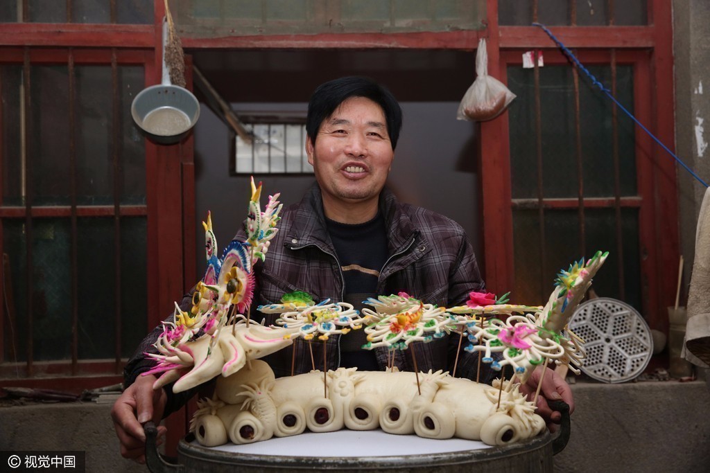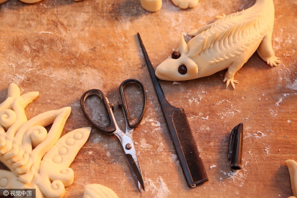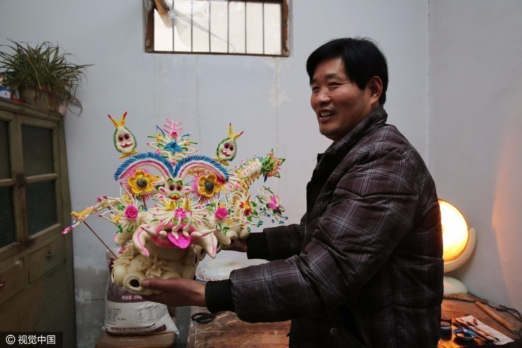 在渭南做花馍的几乎都是老婆子,王普章去外地表演花馍制作,开始几乎没有人相信一个大男人能做花馍,但见了后,都惊叹其高超的制作技艺。