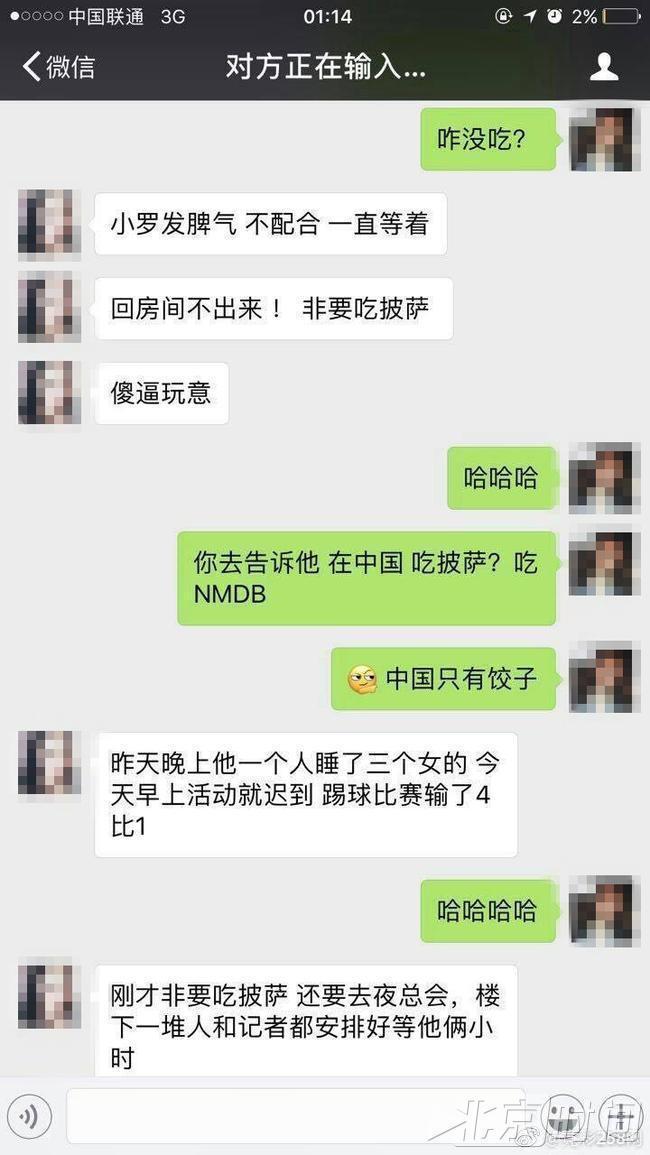 罗纳尔迪尼奥来中国参加表演赛,流传的照片显示,小罗裸着上身,和一位中国制服美女,在房内合影。