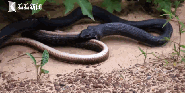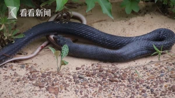 美国一名男子和妻子出去旅游的路上,看到了罕见的一幕,从一条黑蛇的嘴里吐出另一条蛇。