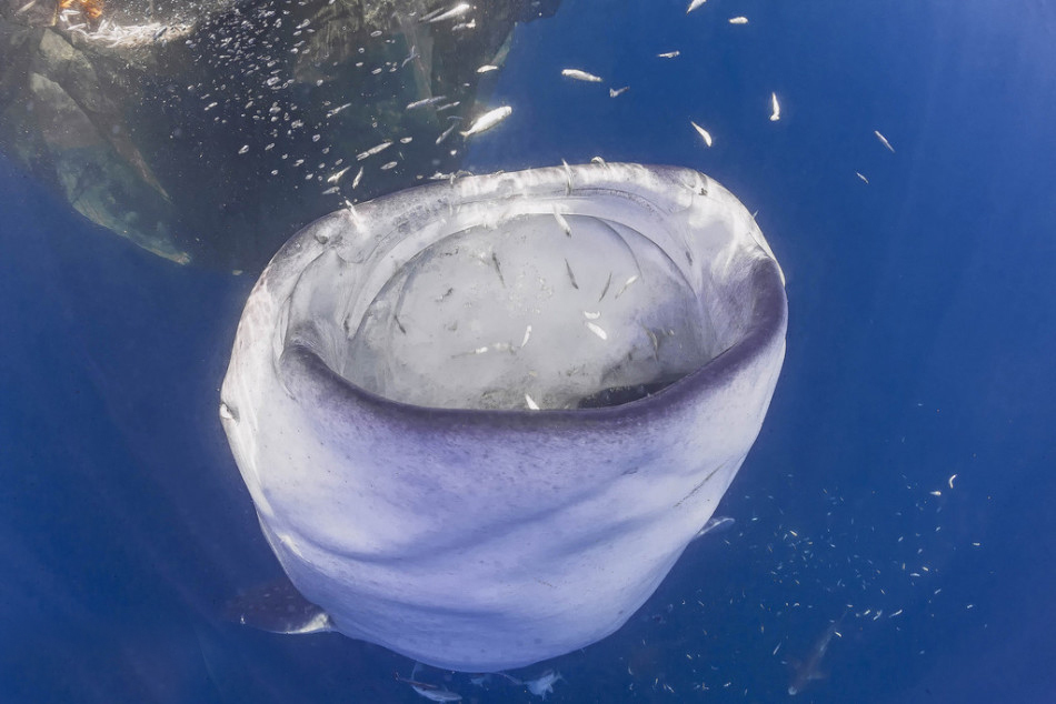 德国水下摄影师Markus Roth拍摄的鲸鲨进食画面。