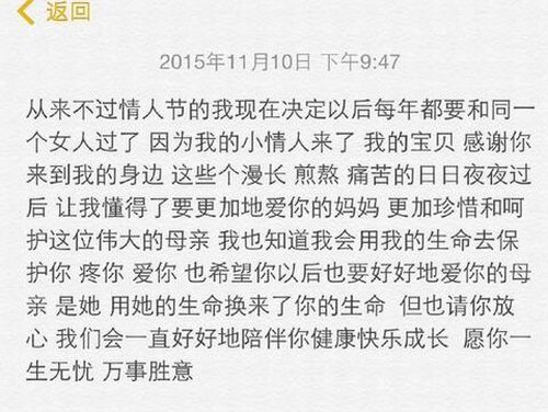 2015年11月10日晚间,快男王栎鑫微博发文,宣布喜得爱女,并晒出陪伴妻子吴雅婷生产的全过程。从产前的细致照顾,到将妻子推入产房,再到自己喜极而泣拥抱baby,王烁鑫都记录了下来,场面十分感人。王栎鑫写道:“从来不过情人节的我,现在决定以后每年都要跟同一个女人过了,因为我的小情人来了,感恩这一切……。”