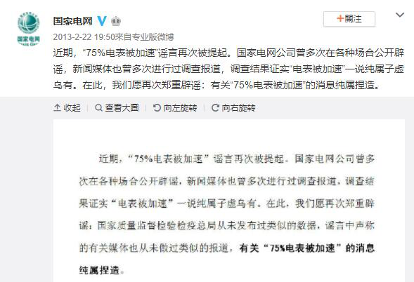 千龙网北京8月14日讯(记者 包萌) 近日,一则“电表被加速,上千民众拒绝交电费”的消息被广泛传播。北京地区网站联合辟谣平台整理后发现,这是一则流传已久的“陈年谣言”。据媒体报道,早在2005年就有《中国75%电表都被蓄意加速》的帖文,虽然原帖已删除,但其“复制品”却反复出现,官方辟谣并未减弱其传播态势。