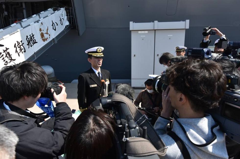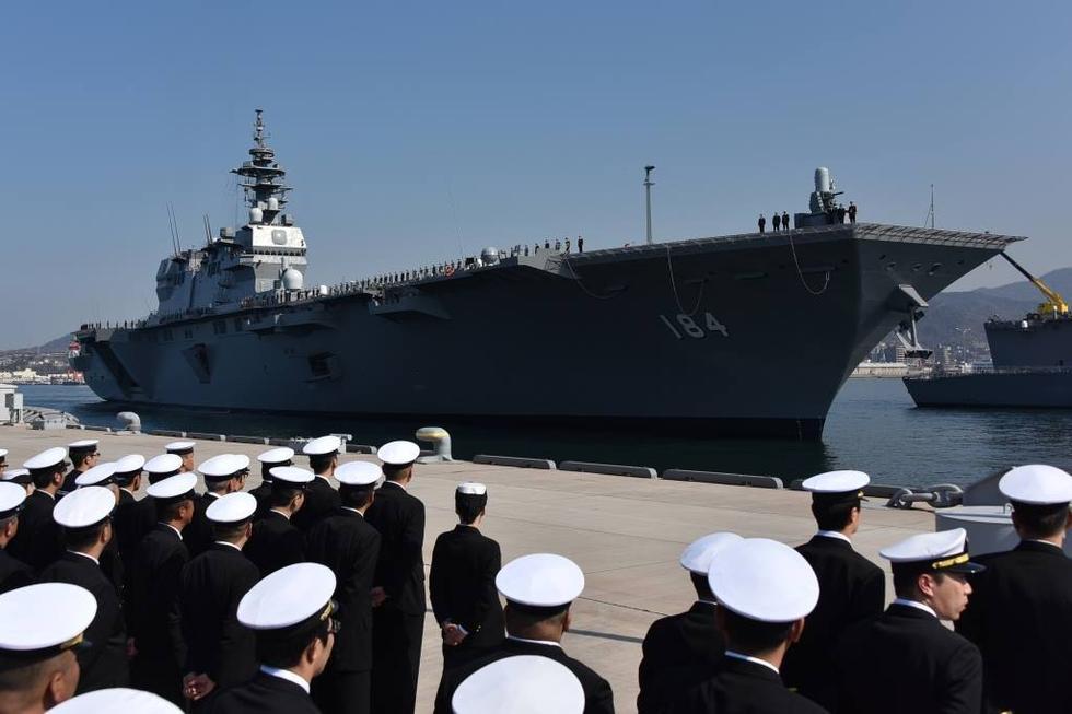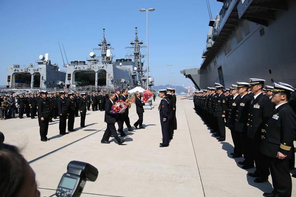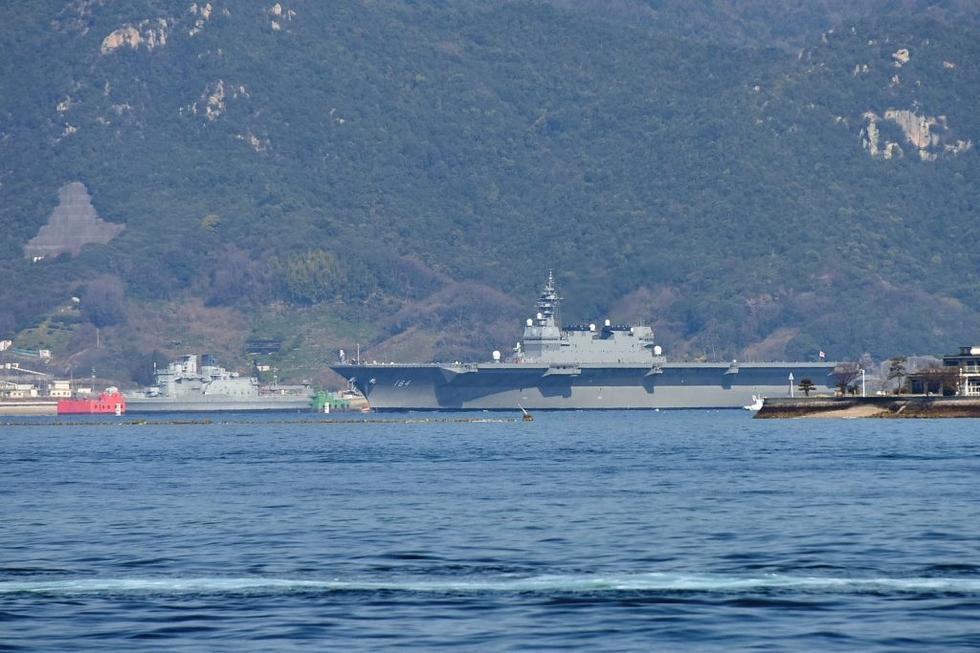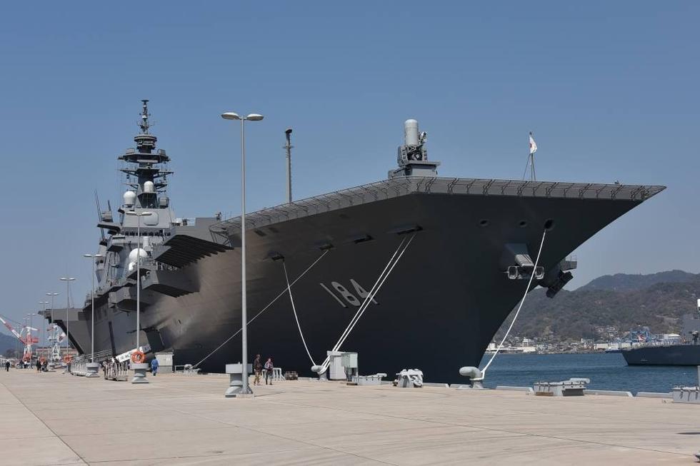 4月3日日本海上自卫队DDH-184“加贺”(かが)号直升机护卫舰抵达广岛县吴海自基地。