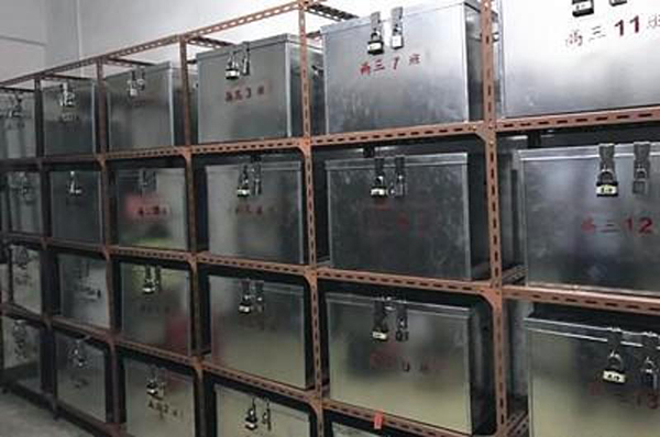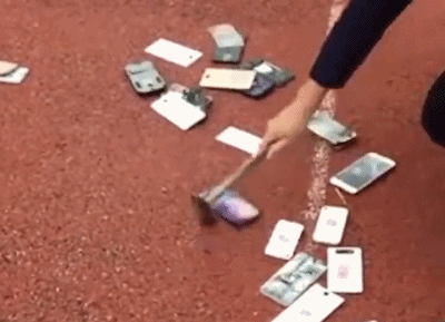 今年9月,河南南阳,某中学举行手机销毁大会,几十部从学生没收来的手机被扔进水桶,用锤子猛砸砸烂。