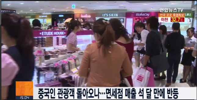 韩国免税店协会20日表示,5月份外国顾客在韩国免税店的消费额为6.559亿美元,环比增长11.1%,时隔三个月止跌回升。