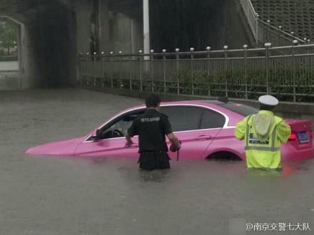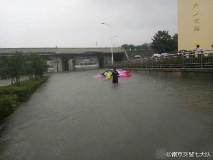 9月25日,江苏南京,持续的暴雨导致南京城不少路段严重积水,给市民的出行造成极大的影响。