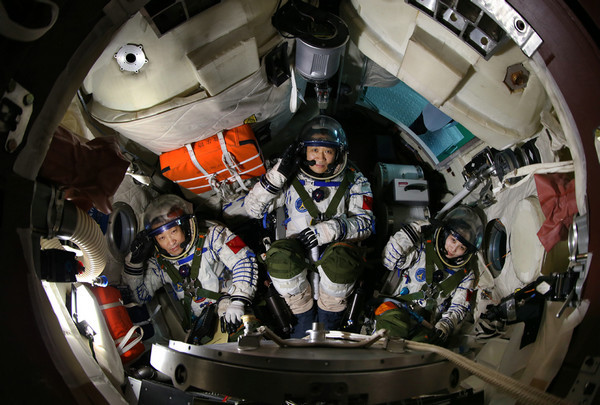 2013年6月11日,西北大漠深处的酒泉卫星发射中心迎来中国人的又一次太空出征,执行神舟十号飞行任务的3名航天员身着乳白色舱内航天服,出现在圆梦园问天阁南侧门口。数百名前来壮行的人们把圆梦园变成一片沸腾花海,张晓光在军号和战鼓声中迈步前行。
