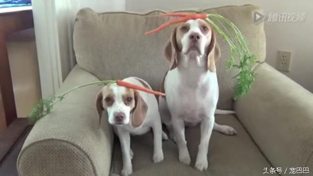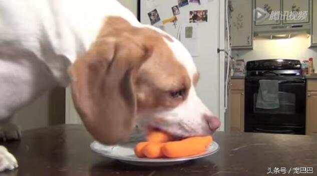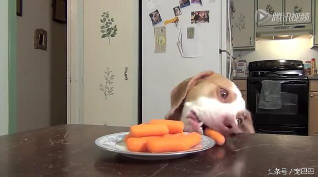 两只狗狗趁着主人没在家,看见桌上有一盘红萝卜,超级开心,开始想尝尝是什么味道,结果根本停不下来。