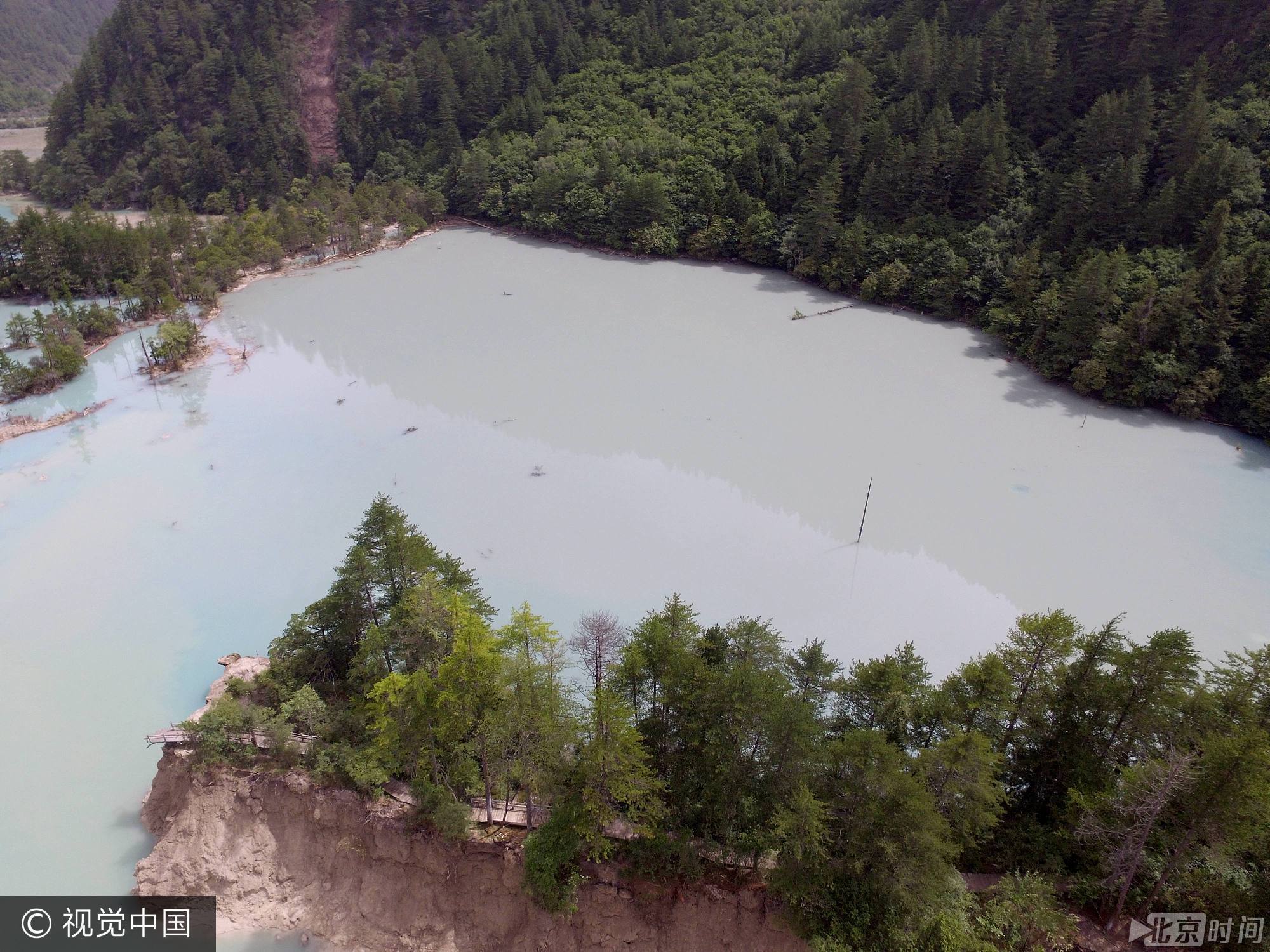 2017年8月10日,四川阿坝,航拍震后的九寨沟景区