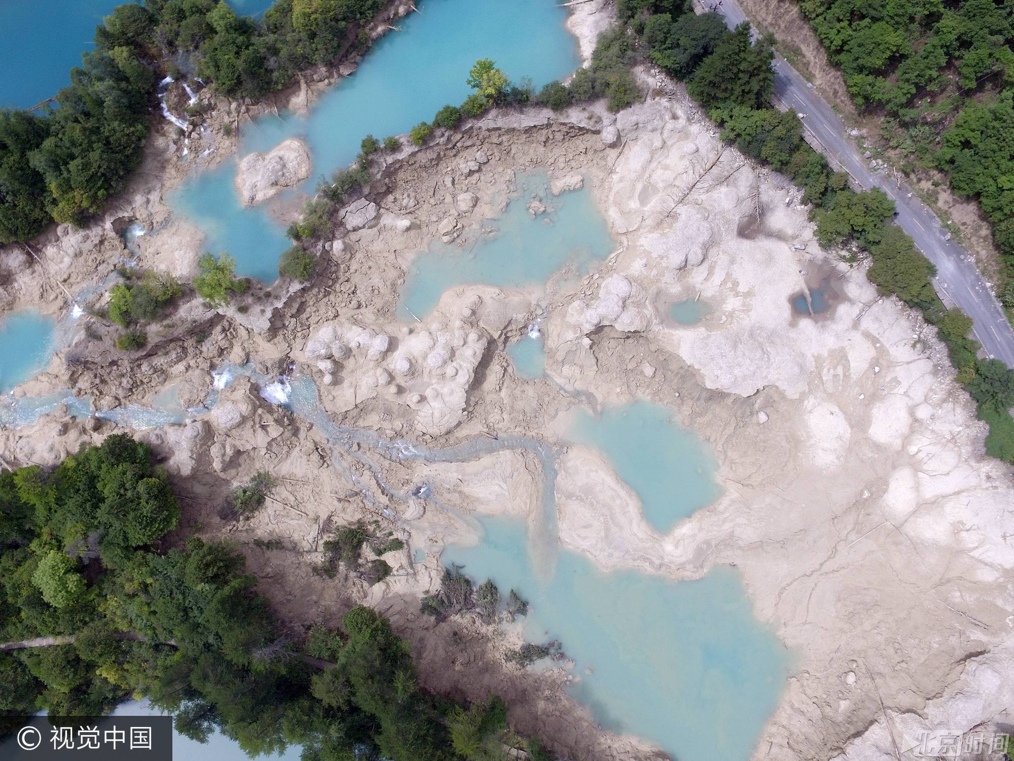 航拍九寨沟震区情况 现今火花海干涸见底_北京时间